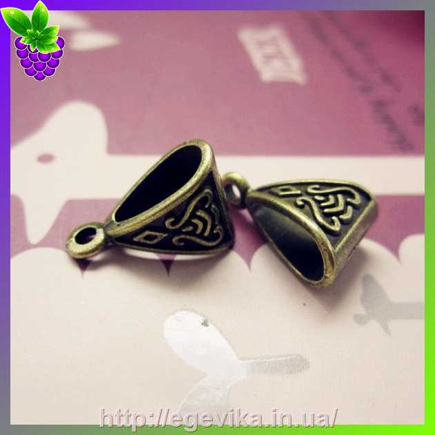 Артикул производителя: 6305Бейл, держатель кулона, коннектор в тибетском стиле. У бейла 1 кольцо для соединения с другими элементами, а также большая петля для продевания шнура или цепочки. Материал: металл Цвет: бронза Форма: треугольник Размер: 15,5 х 10 х 7 мм, отверстие - 2 мм