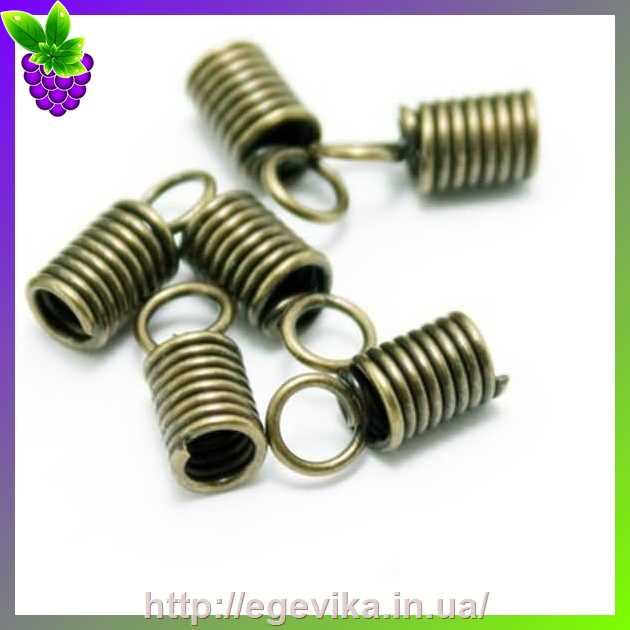 Артикул производителя: Концевик пружинка Цвет: бронза Форма: цилиндр, пружинка Материал: металл Размер: 8,5х3 мм, внутренний диаметр - 2 мм, отверстие - 1,5 мм