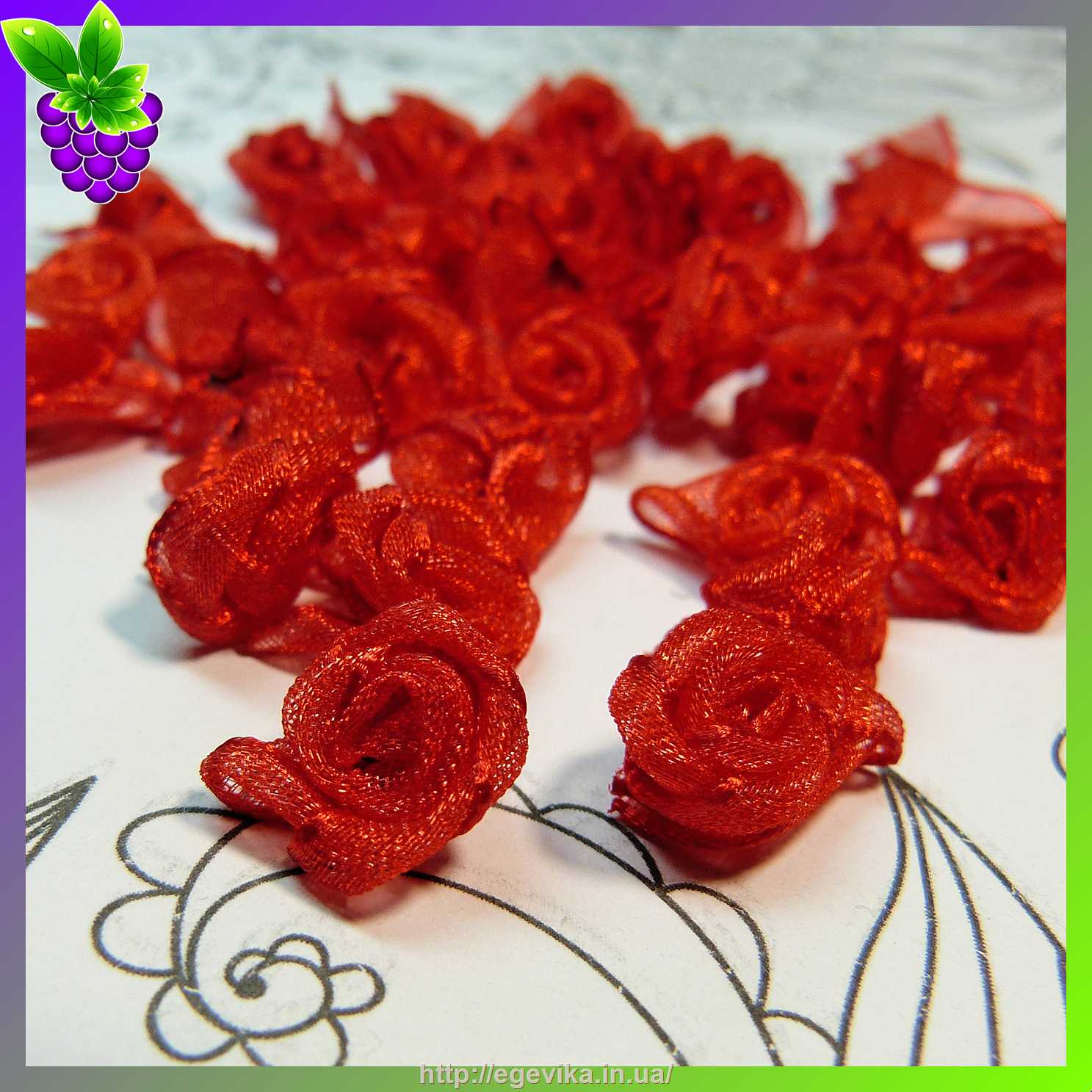 Купить "Трояндочки з органзы, колір червоний, 10 мм"