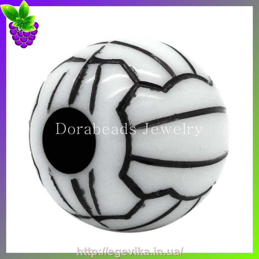 Артикул производителя: Бусины пластиковая волейбольный мяч Материал: пластик. Цвет: белый, черная полоска. Размер: 12 мм