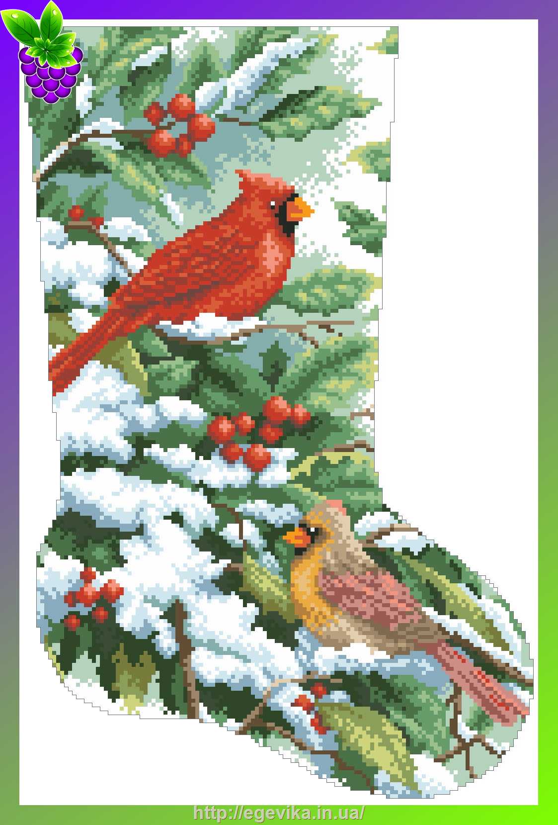 В комплект входит: цветной рисунок схемы-заготовки на ткани, с/без перечня номеров рекомендуемого бисера Preciosa (Чехия), инструкция по вышивке бисером и пошиву новогоднего сапожка.