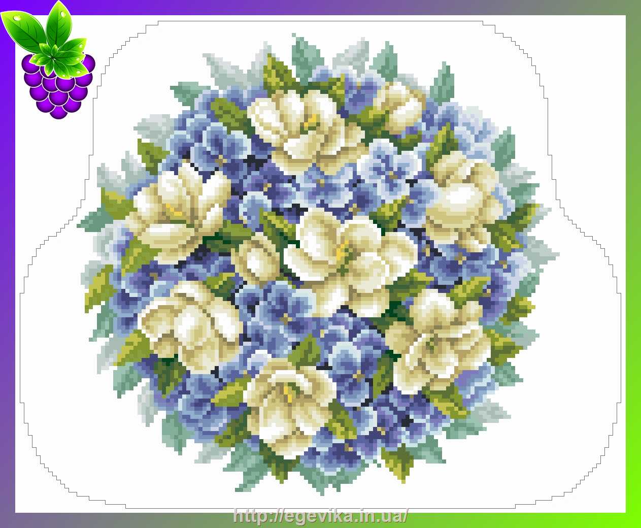 Ткань, схема: Атлас/плащевка с нанесенным рисунком для полной вышивки бисером. Атлас/плащевка уплотнена флизелином