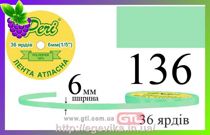 Купить "Стрічка атласна, 6 мм, колір 136"