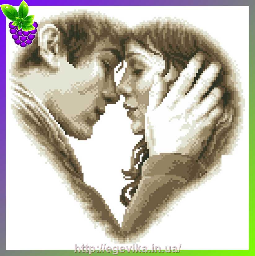 Купить "Схема, частичная вышивка бисером, габардин/атлас, "Поцелуй""