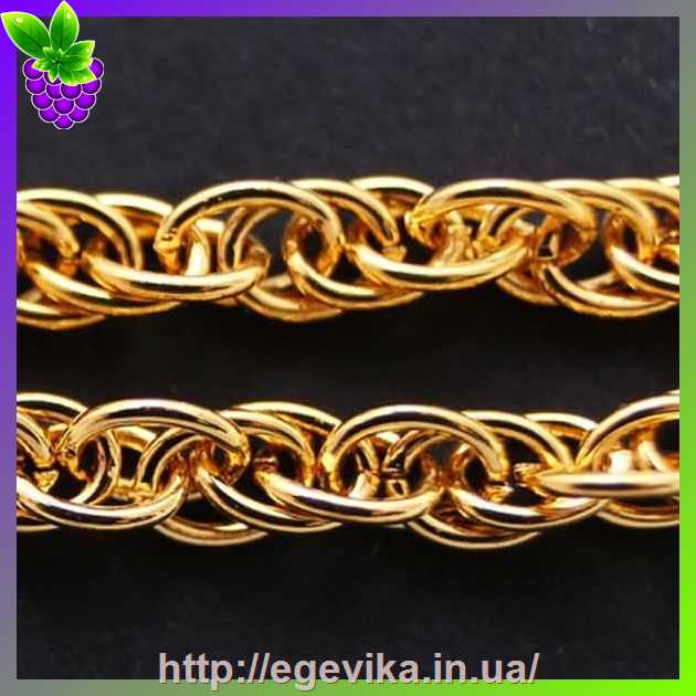 Артикул производителя: 6038Размер звена: длина - 5 мм, ширина - 3,5 мм, толщина - 1 мм Способ плетения: двойной Вид: веревка Материал: метал железо Цвет: золотой Размер отрезка: 1 метр погонный Цена указана за 1 погонный метр