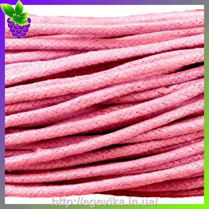 Артикул производителя: Вощеный шнур. Цвет: розовый. Толщина: 1-1,2 мм. Материал: вощеный хлопок. Длина: 1 м Цена указана за 1 метр погонный