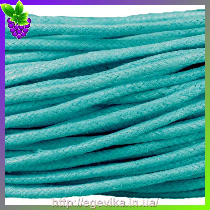 Артикул производителя: Вощеный шнур. Цвет: бирюзовый. Толщина: 1-1,2 мм. Материал: вощеный хлопок. Длина: 1 м Цена указана за 1 метр погонный