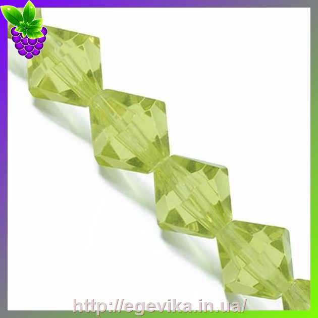 Купить "Бусина скляна гранована, биконус, колір салатовый, 8 мм"