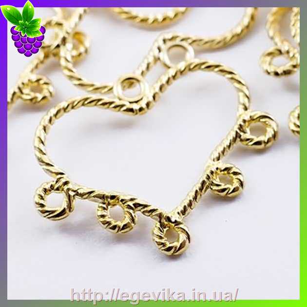 Артикул производителя: 28268Коннектор, 1 кольцо-основа и 5 отверстий Материал: металл Цвет: золото Размер: 29х34х2 мм Форма: сердце