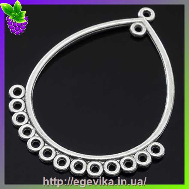 Артикул производителя: 1994Коннектор, 1 кольцо-основа и 13 отверстий Материал: металл Цвет: античное серебро Размер: 47х36х1,5 мм, диаметр отверстия - 1,5 мм Форма: капля