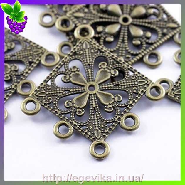 Артикул производителя: 28215Коннектор, 1 кольцо-основа и 5 отверстий Материал: металл Цвет: бронза Размер: 36,5х34х1,5 мм, диаметр отверстия - 2 мм Форма: ромб