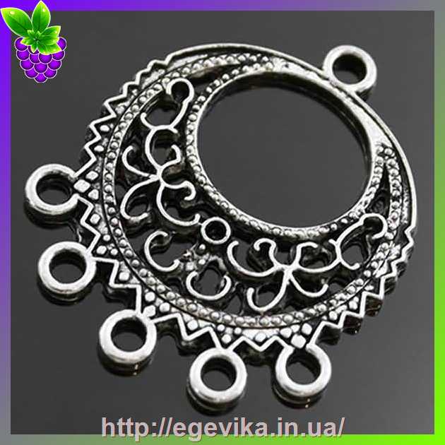 Артикул производителя: 1397Коннектор, 1 кольцо-основа и 5 отверстий Материал: металл Цвет: платина Размер: 32х27х2 мм, диаметр отверстия - 2 мм Форма: круглая