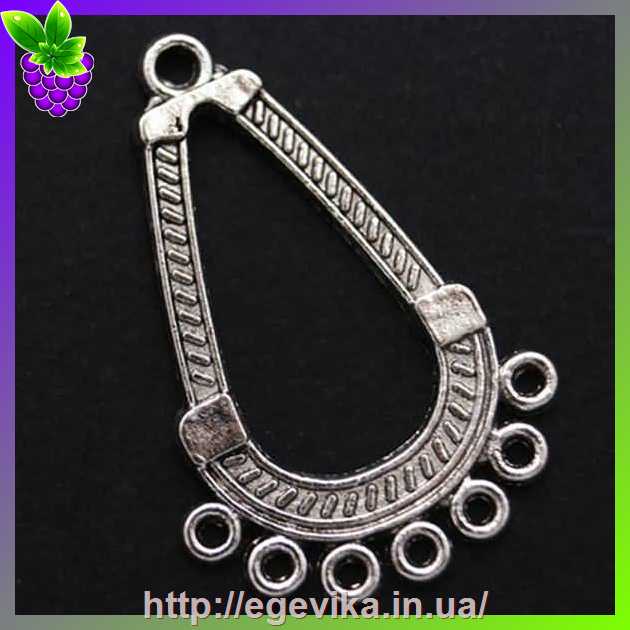 Артикул производителя: 6166Коннектор, 1 кольцо-основа и 7 отверстий Материал: металл Цвет: античное серебро Форма: капля Размер: 32,5 х 22 х 1 мм, диаметр отверстия - 2 мм