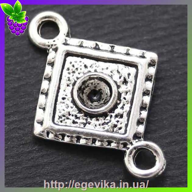 Артикул производителя: 6723Коннектор, 2 отверстия Материал: металл Цвет: античное серебро Размер: 21х15х2 мм, диаметр отверстия - 2 мм Форма: ромб Пригоден под стразы