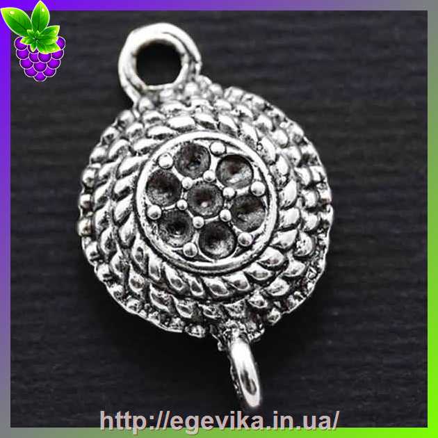 Артикул производителя: 6490Коннектор, 2 отверстия Материал: металл Цвет: платина Размер: 22х13х5 мм, диаметр отверстия - 2 мм Форма: круглая Пригоден под стразы 1~2 мм