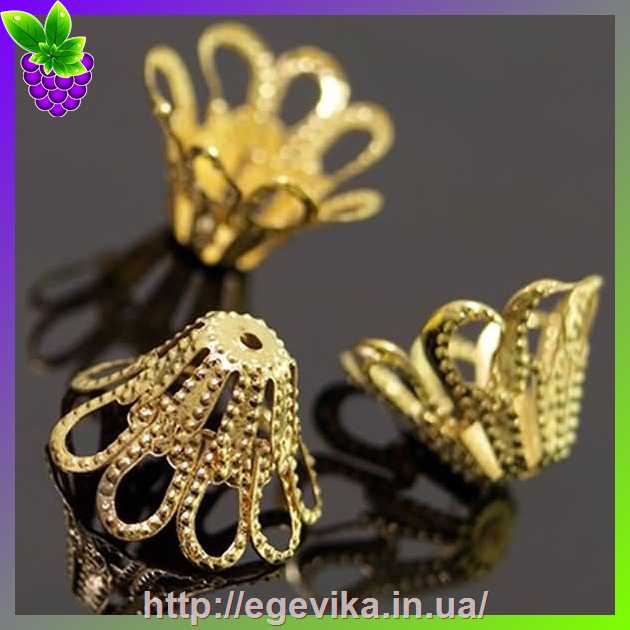 Артикул производителя: 5747Концевик шапочка колпачок Цвет: золото Форма: конус Материал: металл Размер: 14х9 мм, внутренний диаметр - 15 мм, отверстие - 1 мм