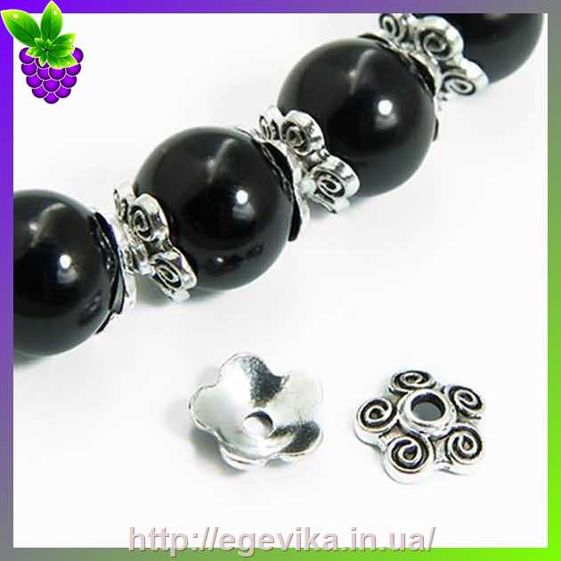 Артикул производителя: 7755Обниматель, шапочка для бусин Материал: металл Цвет: античное серебро Форма: круглая, цветочек Размер: 10 х 4 мм, отверстие - 1 мм
