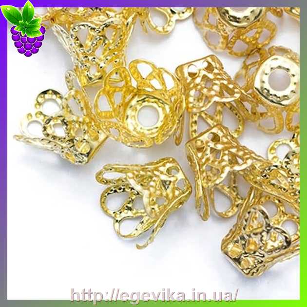 Артикул производителя: 10111Концевик конус, шапочка для бусин Материал: металл Цвет: золото Размер: 9 х 8 мм, отверстие - 1,2 мм