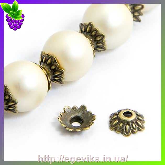 Артикул производителя: 1982Концевик конус, шапочка для бусин Материал: металл Цвет: бронза Форма: круглая, цветочек Размер: 8 х 2,5 мм, отверстие - 2 мм
