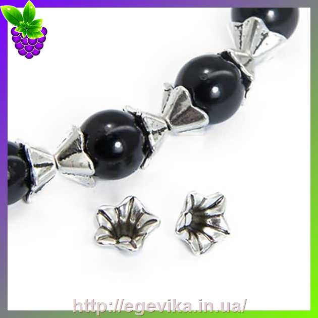 Артикул производителя: 29203Концевик конус, шапочка для бусин Материал: металл Цвет: античное серебро Форма: круглая, цветочек Размер: 8,5 х 5 мм, отверстие - 1 мм
