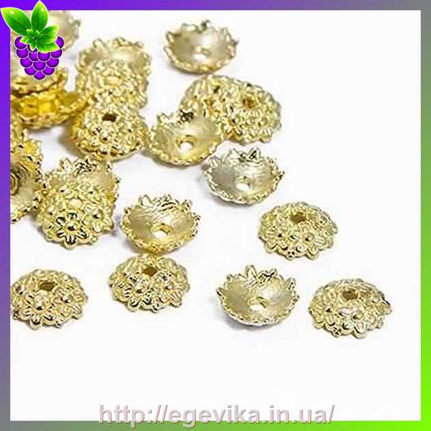 Артикул производителя: 30382Концевик конус, шапочка для бусин Материал: металл Цвет: золото Форма: круглая, цветочки Размер: 11 х 3,5 мм, отверстие - 2 мм