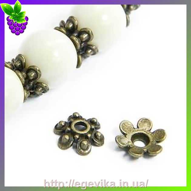 Артикул производителя: 30386Обниматель цветочек. Материал: металл Цвет: бронза Форма: круглая, цветок 6 лепестков Размер: 10 х 3 мм, отверстие - 1 мм