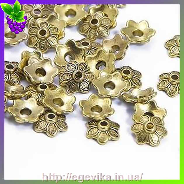 Артикул производителя: 30384Обниматель цветочек. Материал: металл Цвет: античное золото Форма: круглая, цветок Размер: 10,5 х 3,5 мм, отверстие - 2 мм
