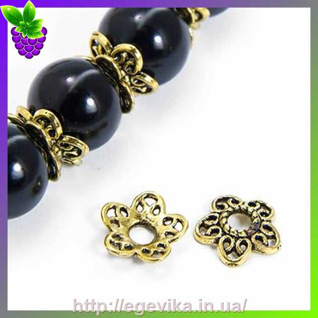 Артикул производителя: 1980Обниматель, шапочка для бусин Материал: металл Цвет: античное золото Форма: круглая, цветочек Размер: 12 х 3 мм, отверстие - 3 мм