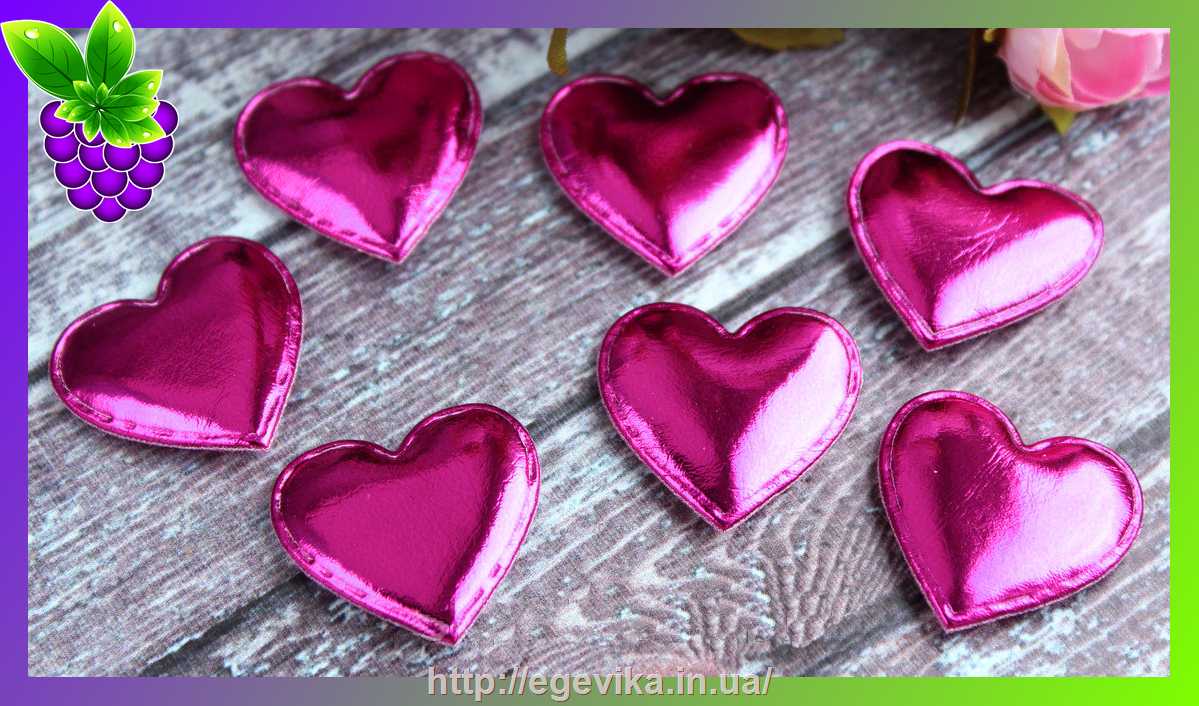 Артикул производителя: Апликация Форма: серце Матеріал: экокожа, полиестр, поролон Колір: малиновий Эфект: металлик Розмір: 3 х 3 см, товщина - 3 мм Клейова основа: отсутствует