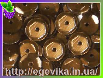 Артикул производителя: Пайетки Форма: кругла Тиснення: шестигранне усередині Колір: чайний Эфект: металлик Розмір: діаметр - 6 мм Вага: 5 г