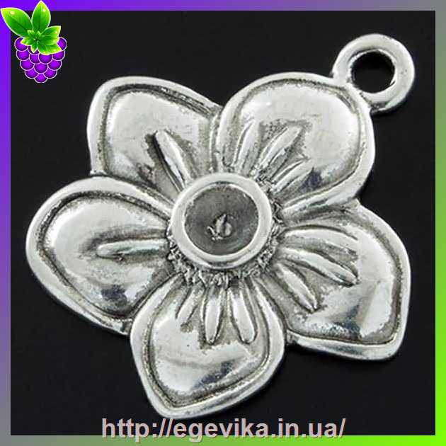 Артикул производителя: 2290Кулон-Підвіска квітка. Матеріал: метал Колір: античне срібло Форма: квітка Розмір: 24 х 20 х 4 мм, отвір - 2 мм
