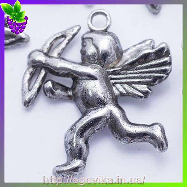 Артикул производителя: 18884Кулон-Підвіска купідон. Колір: античне срібло Форма: купідон, Амур, янголятко Розмір: 29 х 27 х 3 мм, отвір - 2 мм