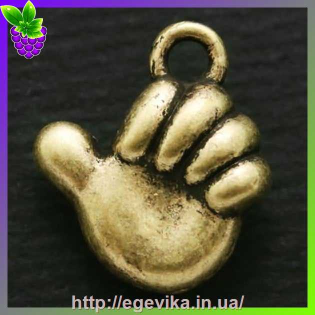 Артикул производителя: 6465Кулон-Підвіска рука. Колір: бронза Форма: рука, великий палець нагору - позначає "Усі дуже добре" Розмір: 13 х 11 х 4,5 мм, отвір - 2 мм