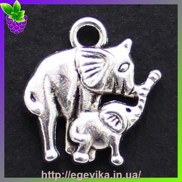 Артикул производителя: 6451Кулон-Підвіска слони. Колір: античне срібло Форма: слони Розмір: 16 х 15 х 2,5 мм, отвір - 2 мм