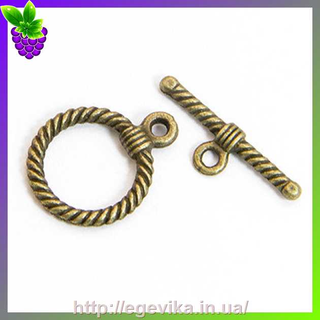 Артикул производителя: 5116Застібка тогл складається з 2- х частин. Матеріал: метал Колір: бронза Форма: кругла Розмір: 22,5 x 17,5 x 3,5 мм, паличка - 25,5 мм, отвір - 2 мм