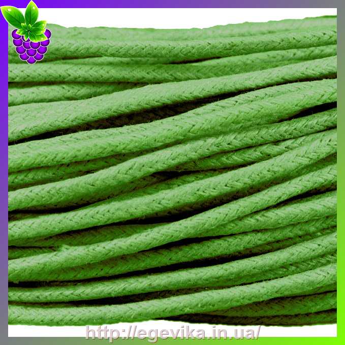 Артикул производителя: Вощений шнур. Колір: зелений. Товщина: 1-1,2 мм. Матеріал: вощена бавовна. Довжина: 1 м Ціна зазначена за 1 метр погонний