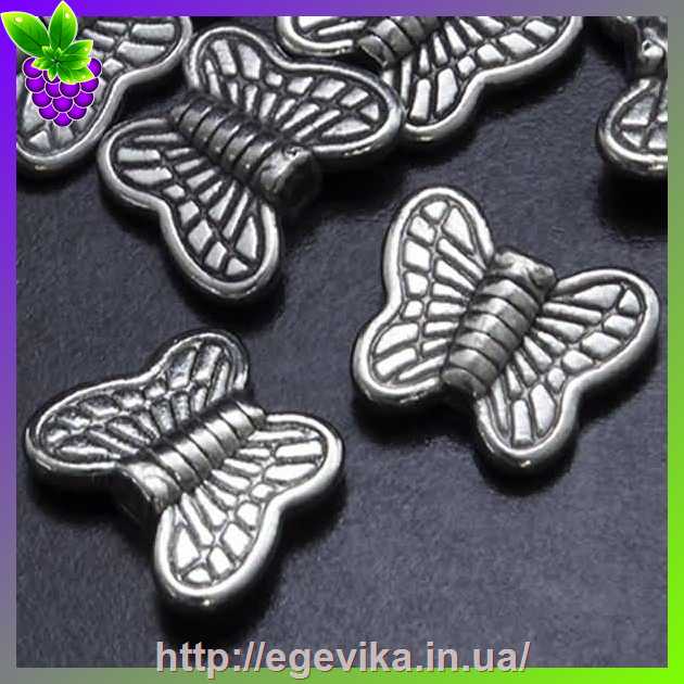 Артикул производителя: 3221Бусина металева Матеріал: метал Колір: античне срібло Форма: метелик Розмір: 8 х 10 х 3 мм, отвір - 1 мм