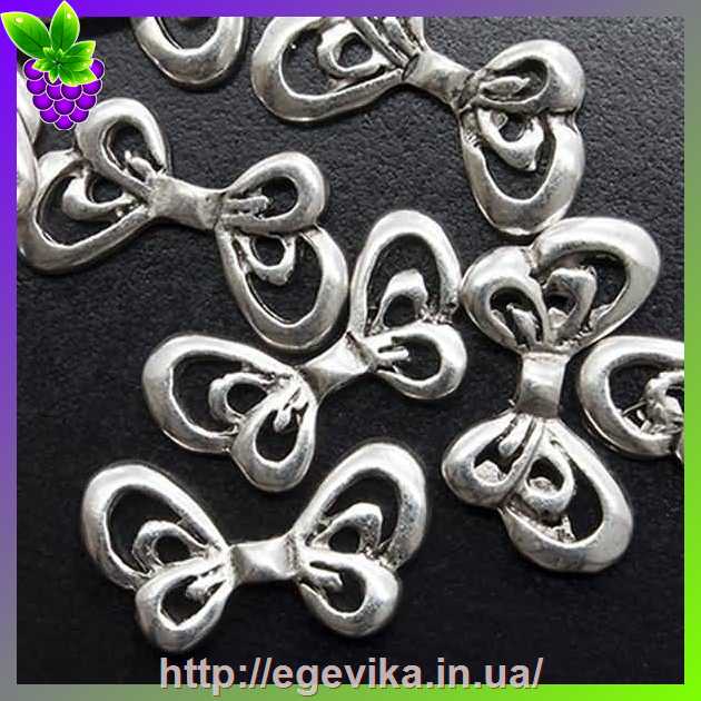 Артикул производителя: 3550Бусина металева Матеріал: метал Колір: античне срібло Форма: метелик Розмір: 17 х 10 х 2,5 мм, отвір - 1,5 мм