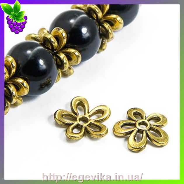 Артикул производителя: 10055Обниматель, шапочка для бусин Матеріал: метал Колір: античне золото Форма: кругла, квіточка Розмір: 11,5 х 2,5 мм, отвір - 1 мм