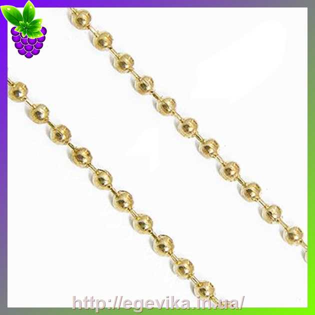 Артикул производителя: 30367Розмір ланки: діаметр ланки 2,4 мм Спосіб плетива: одинарний Вид: плетиво "перлина" Матеріал: метал залізо Колір: золото Розмір відрізка: 1 метр погонний Ціна зазначена за 1 погонний метр