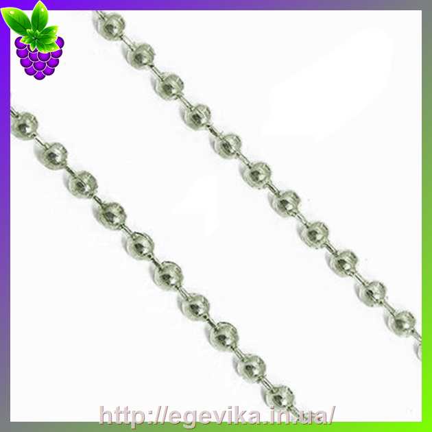 Артикул производителя: 31555Розмір ланки: діаметр ланки 2,4 мм Спосіб плетива: одинарний Вид: плетиво "перлина" Матеріал: метал залізо Колір: платина Розмір відрізка: 1 метр погонний Ціна зазначена за 1 погонний метр