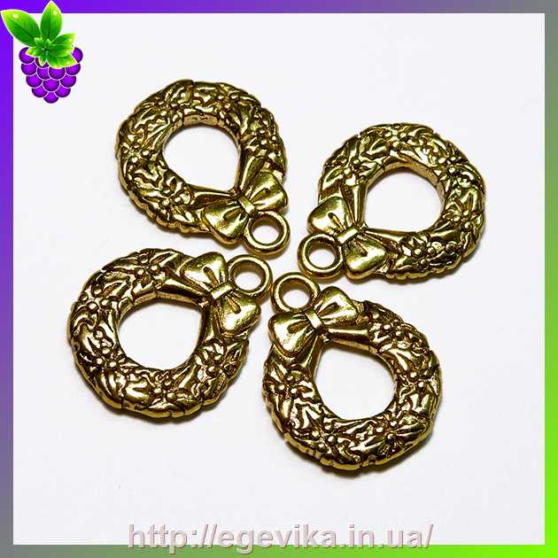 Купить "Кулон-Підвіска, різдвяний вінок, колір античне золото, 17х21х3 мм"