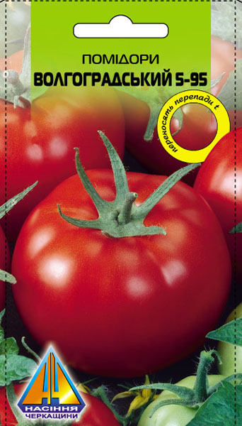 Помідори Волгоградський 5/95 (0,2г), середньопізній, кущ висотою до 0,7м, плоди масою до 150г -
