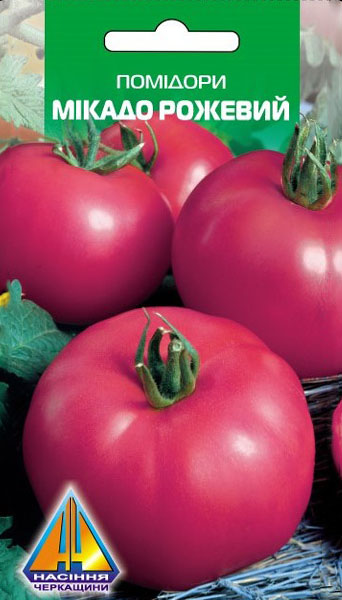 Помідори Мікадо рожевий (0.1г), середньоранній, кущ висотою 1,5-2,5м, плоди масою до 90г -