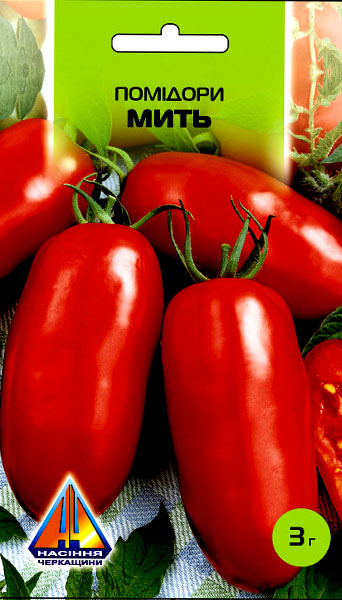 Помідори Мить (3г), ранньостиглий, кущ висотою до 0,6м, плоди масою 75-80г -