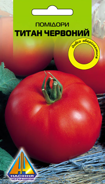 Помідори Титан червоний (0.2г), середньостиглий, кущ висотою до 0,6м, плоди масою до 130г -