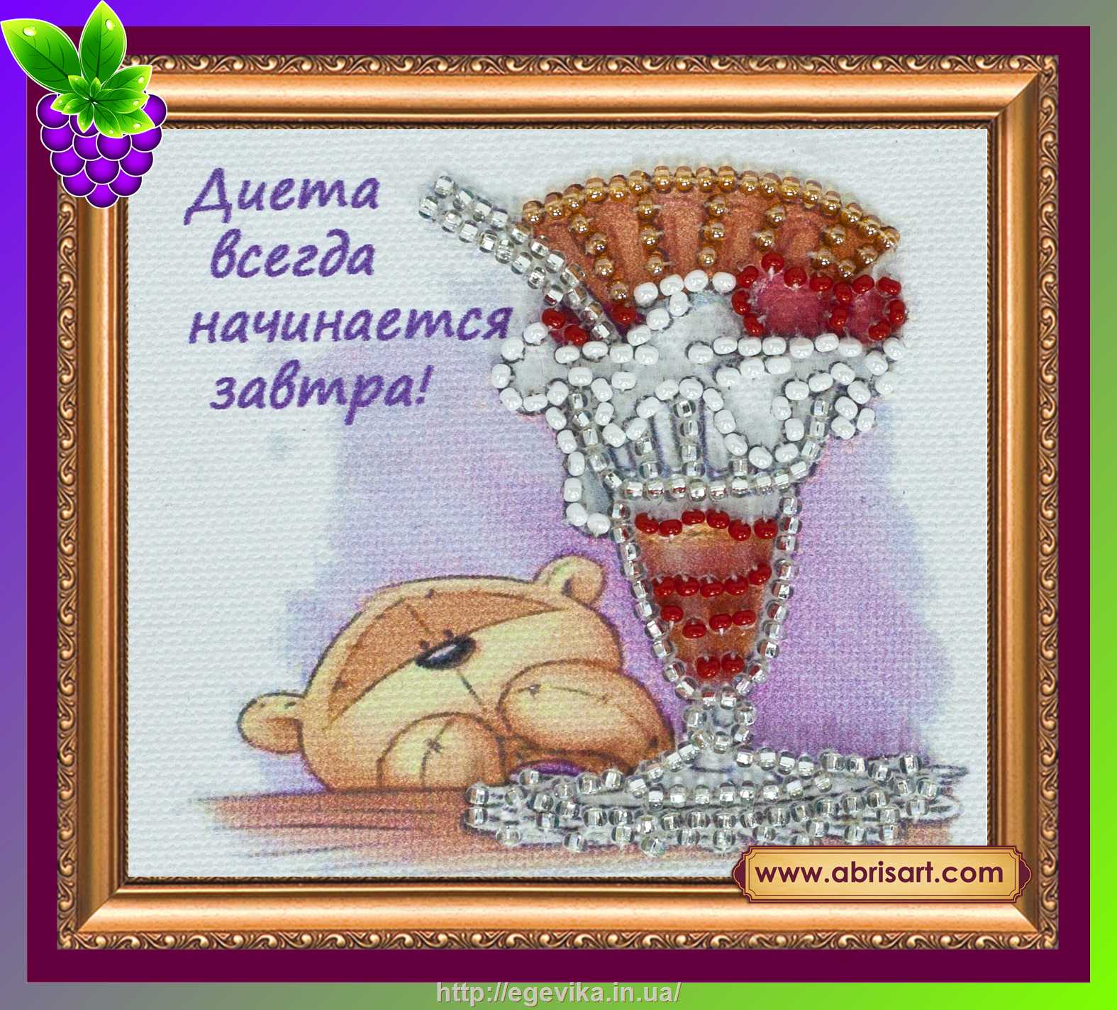 Размер: 80х70 смКоличество цветов: 4Количество бисера: 249 штТехника вышивания: вышивка бисером, шов "назад иголку", "стебельчатый" шовТкань: Холст с нанесенным изображениемБисер: ЧехияВ комплект входит: ткань с нанесенным изображением, бисер, игла, краткая инструкция по вышиванию, магнит, обложка рамочка (в которую вклеивается готовое изделие)