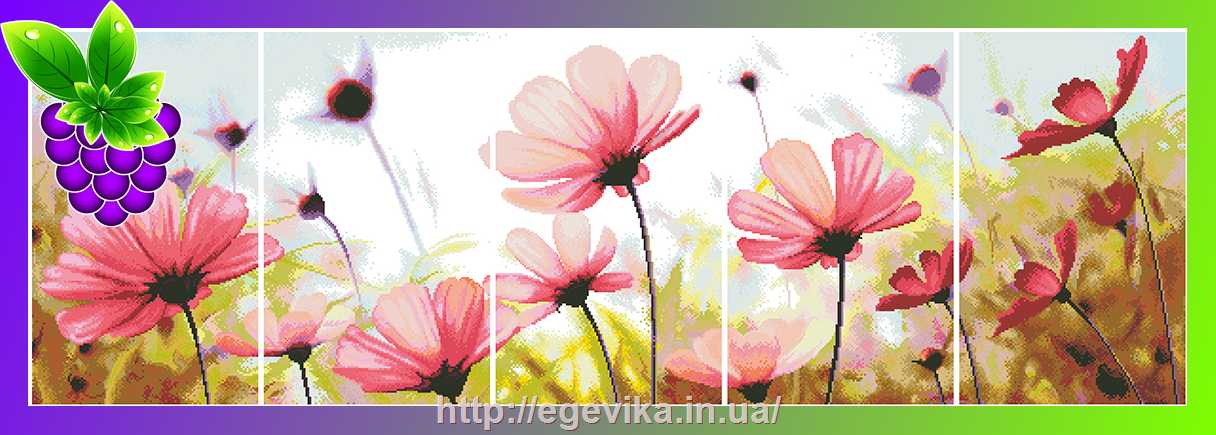 Модульная картина, полиптих, 5 частейРазмер: 25,2х41,5 см, 25,2х41,5 см, 25,2х41,5 см, 25,2х41,5 см, 25,2х41,5 смКоличество цветов: 42Ткань, схема: Атлас/габардин/полиэстр с нанесенным рисунком для полной вышивки бисером (100% полиэстер). Атлас/габардин уплотнен пропиткой и флизелиномТехника: Вышивка бисеромВ комплект входит: цветной рисунок на ткани, с/без перечня номеров рекомендуемого бисера Preciosa (Чехия) в граммах или штуках.Бисером не комплектуется.Подбор от магазина "Ежевика" чешского бисера Preciosa: - 58562 - 08136 - 17228 - 16928 - 16128 - 38828 - 27080 - 37173 - 37126 - 38127 - 58528 - 16325 - 57552 - 02153 - 53430 матовый - 37186 - 17986 - 88130 - 37389 - 03491 - 02291 - 01191 - 17897 - 96070 - 97090 - 90120 - 37188 - 03184 - 58589 - 11398 - 02181 - 83111 - 10020 - 10050 матовый - 10070 - 01770 матовый - 18600 - 23980 - 03251 - 02151 - 01720 матовый - 02090