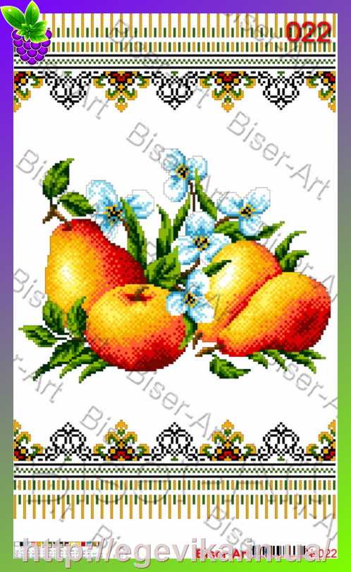 Розмір: 30x50 смФормат: А3 (29.7 х 42.0 см)Кількість квітів: 16Тканина: Габардин з нанесеним малюнкомЗашиття: часткова вишивка бісеромНаявність флизелина: єТехніка вишивання, матеріали: бісерВиди швів: монастирський шовУ комплект входить:- тканина з нанесеним малюнком,- перелік номерів необхідної кількості бісеру Precіosa (Чехія),- інструкція з вишивання.Бісер у комплект не входить.Ви можете замовити бісер у нас на сайті.Ми виконуємо добір бісеру до схем для вишивання.