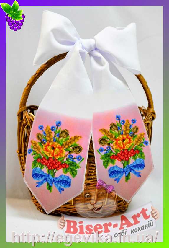 Розмір: 12x140 смФормат: Не визначенийКількість квітів: 18Тканина: Габардин з нанесеним малюнкомЗашиття: часткова вишивка бісеромНаявність флизелина: єТехніка вишивання, матеріали: бісерВиди швів: монастирський шовБант під вишивку на великодній кошик. Готовий пошитий виріб з габардину з нанесеною схемою для вишивання. Бант по краях оверлочен. У місці вишивки ущільнений флизелином.У комплект входить:- тканина з нанесеним малюнком,- перелік номерів необхідної кількості бісеру Precіosa (Чехія),- інструкція з вишивання.
